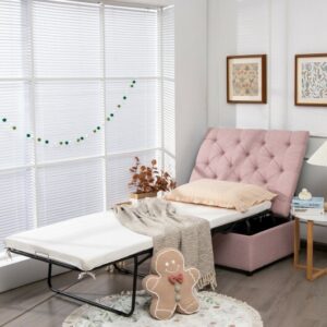 Folding Ottoman Sleeper Bed with Mattress for Guest Bed and Office Nap-Pink – Color: Pink