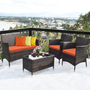 4 Pieces Comfortable Outdoor Rattan Sofa Set with Glass Coffee Table-Orange – Color: Orange