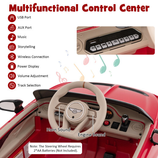 12V Powered Car Kids Ride-on Racer Car Licensed Bentley Bacalar-Red – Color: Red