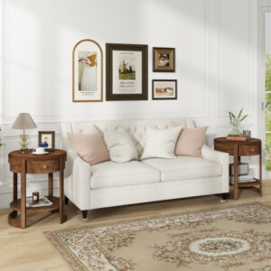 Specifications: Color Brown Material Rubber Wood MDF Plywood Overall Dimensions 19.5″ x 19.5″ x 24″ Diameter of Tabletop 18.5″ Interior of Drawer 12.5″ x 10″ x 3.5″ Diameter of Bottom Shelf 18″ Space Between Shelf and Drawer 16.5″ Space Between Shelf and Ground 5″ Weight Capacity of Tabletop 190 lbs Weight Capacity of Drawer 30 lbs Weight Capacity of Bottom Shelf 56 lbs Net Weight 19.5 lbs
