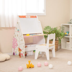 -Can be used as a art easel a table and chair set and a storage organizer for kids