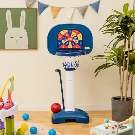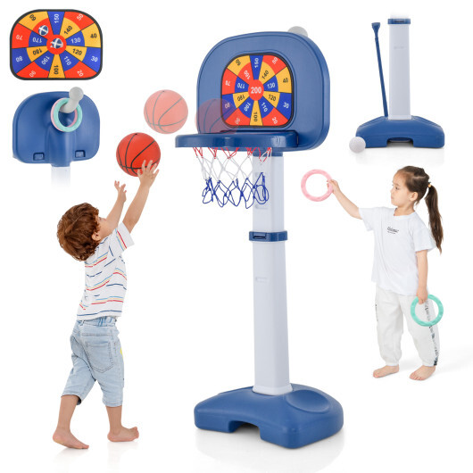 4-In-1 Adjustable Kids Basketball Hoop with Ring Toss Sticky Ball