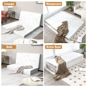4 Inch Tri-fold Cool Gel Memory Foam Mattress-Queen Size – Color: White – Size: Queen Size