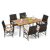 Specifications: Color of Cushion: Gray/Navy/Off White Color of Rattan: Black Material: PE Rattan Acacia Wood Metal Polyester Sponge Dimension of Loveseat: 25.5″ x 50″ x 27.5″ (L x W x H) Dimension of Armchair: 25.5″ x 29″ x 27.5″ (L x W x H) Dimension of Coffee Table: 20″ x 20″ x 16″ (L x W x H) Inner Size of Coffee Table: 18″ x 18″ x 10″ (L x W x H) Seat Height: 12″ Dimension of Seat Cushion: 23″ x 21″ x 3.5″ (L x W x Thickness) Dimension of Back Cushion: 24″ x 16.5″ x 6″ (L x W x Thickness) Weight Capacity of Loveseat: 800 lbs Weight Capacity of Armchair: 400 lbs Weight Capacity of Tabletop: 165 lbs Weight Capacity of Bottom of Table: 55 lbs Total Net Weight: 84.5 lbs