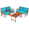 4 Pieces Outdoor Rattan Furniture Set with Glass Table – Color: Brown