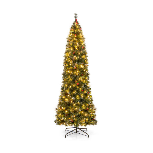 5/6/7/8/9 FT Pre-Lit Artificial Hinged Slim Pencil Christmas Tree-8 ft – Color: Green – Size: 8 ft