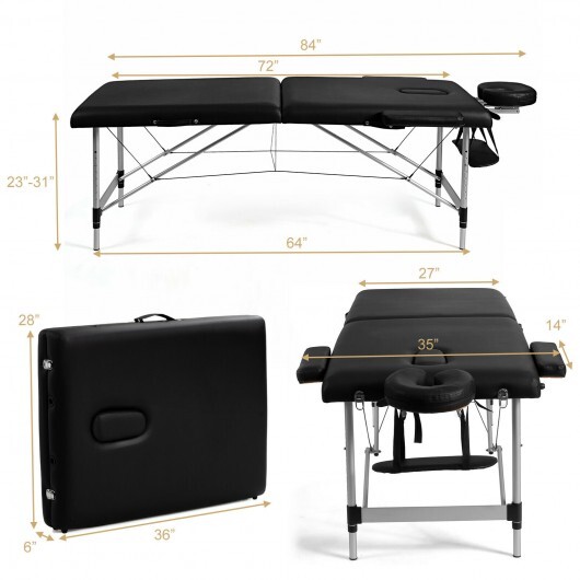 The height and headrest can be adjusted to fit therapists of different heights and meet various needs. Besides the foldable and lightweight design allows you to carry this spa bed with ease and store it easily. The included carrying bag gives extra convenience. Constructed of premium aluminum alloy frame with support steel cables this high-quality massage table is durable and stable to hold up to 441 lbs. And the high-density sponge and breathable PVC leather offer maximum comfort and clean it easily.
