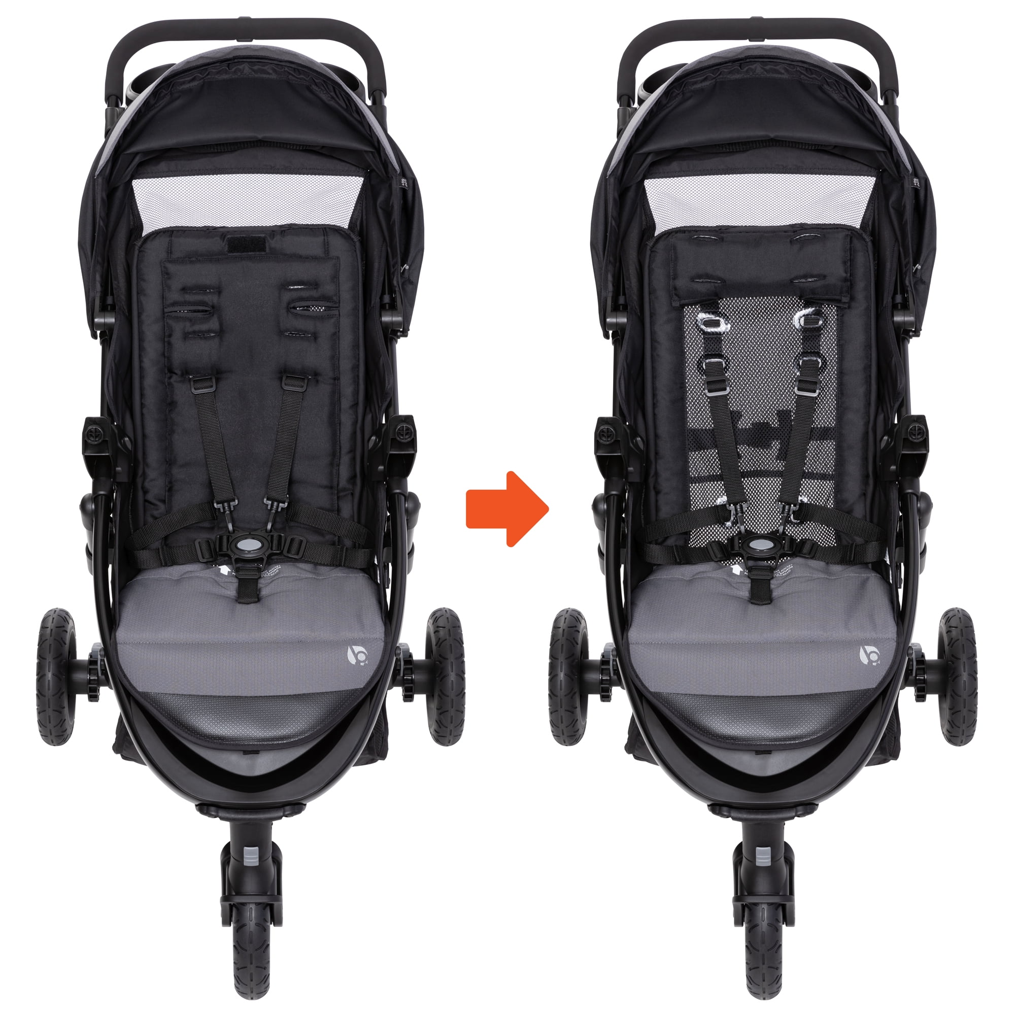 8” rugged wheels on front and rear for grip and a smooth strolling experience The seat back soft goods roll up to convert into a mesh air-flow seat back with pillow to provide your child with ventilation and enhanced comfort in warmer weather Comfort Cabin offers a multi-layered padded seat and UPF 50+ canopy protection for a content, happy child Deluxe parent tray with multi-directional phone holder and flex-grip cup holders for hands-free accessibility to your essentials Large storage basket with front and rear access for your on-the-go necessities Child tray with two cup holders and snack space that can rotate to easily place your child in or out of the stroller seat Quick and easy one-hand fold Includes the lightweight, EZ-Lift PLUS Infant Car Seat The infant car seat handlebar turns into an anti-rebound bar when placed in forward position for added safety The EZ-Lift includes a built-in side grip for ergonomic carrying Winner of The National Parenting Center’s Fall 2023 Seal of Approval award!