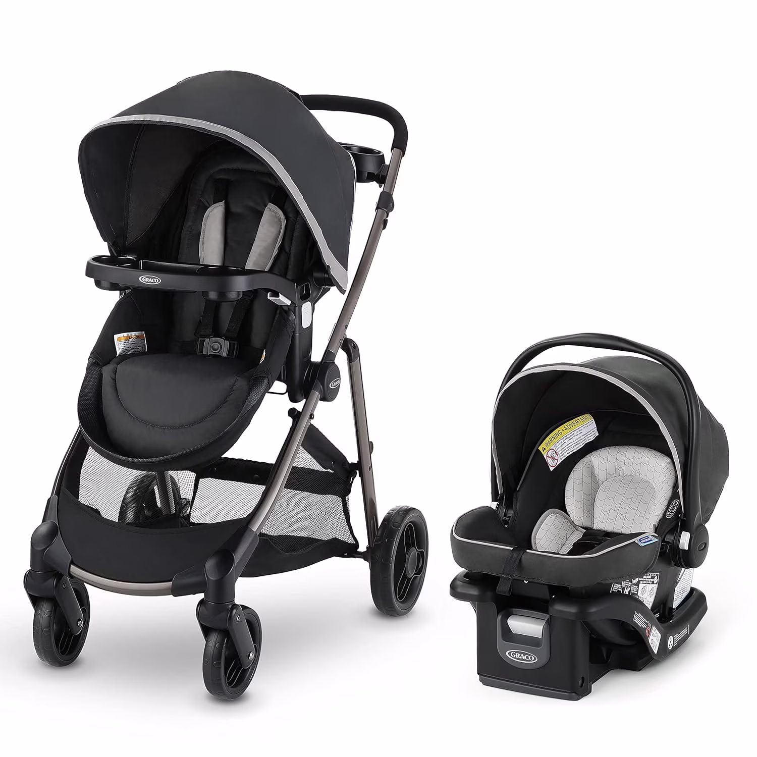 Includes the top-rated KeyFit 30 Infant Car Seat Car seat clicks easily in and out of stroller Lightweight and compact for on-the-go convenience Innovative fold/carry handle for a one-hand, free-standing quick fold Detachable child tray folds down for compact storage 3-position reclining backrest with easy one-hand adjustment Adjustable canopy with mesh extension panel Easy-grip handle and parent tray with two cup holders and zip storage Sleek front swivel wheels for smooth turns and precise maneuverability Large storage basket for on-the-go essentials Toe-tap locking rear brakes for parking Fresh and functional, the Slate fashion embodies the balance between calming comfort and playful texture. A lightweight slate grey micro-patterned woven is accented with tone-on-tone grey piping.