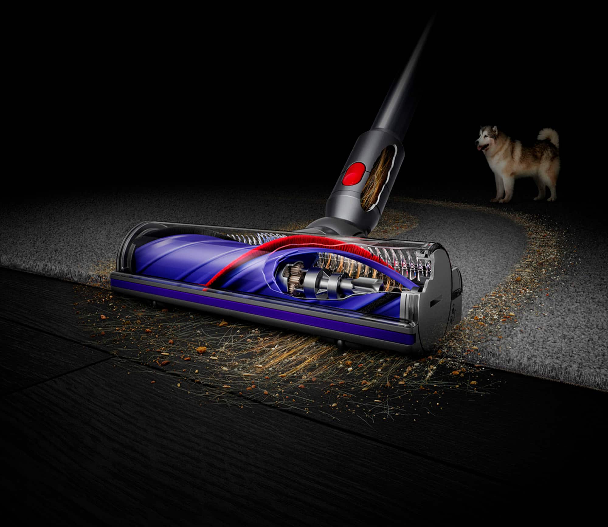 The Dyson V8 cordless vacuum cleaner is engineered with the power, versatility, tools and run time to clean homes with pets. Dyson’s de-tangling Motorbar cleaner head deep cleans carpets and hard floors with hair removal vanes that clear long hair and pet hair from the brush bar. The innovative Hair screw tool with a conical brush bar is perfect for cleaning upholstery and pet beds. The Dyson V8 has advanced, whole-machine filtration that captures pet allergens and fine dust, expelling cleaner air. Thanks to the cordless format, it also transforms into a handheld vacuum with one click so you can clean up high, down low and everywhere in-between. Comes with a 2-year warranty and lifetime Dyson support.
