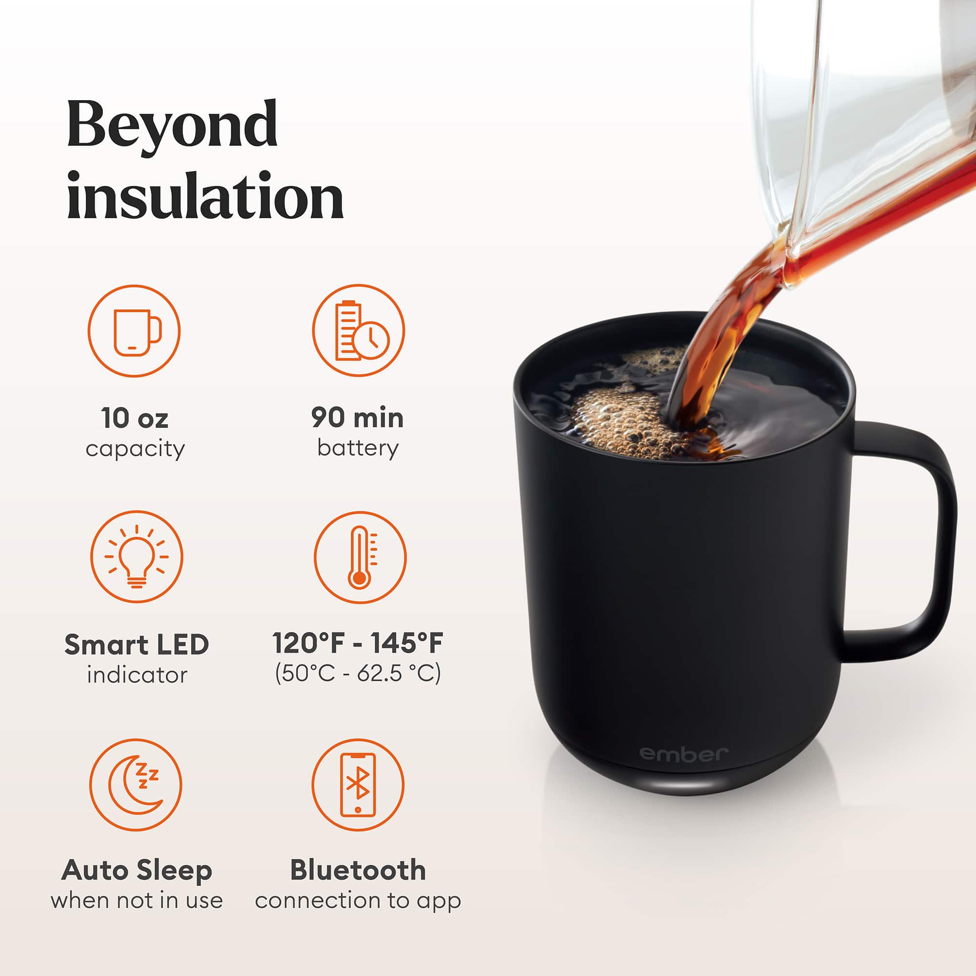 Designed for home or office, Ember Mug 2 does more than simply keep your coffee hot. The temperature control smart mug allows you to set your preferred drinking temperature (120°F – 145°F), so you can enjoy your hot drink—just the way you like it— from the first sip to the last drop. Ember Mug 2’s built-in battery maintains your chosen drinking temperature for up to 1.5 hours, or all day with the included charging coaster.