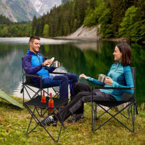 Folding Camping Moon Padded Chair with Carrying Bag-Brown – Color: Brown
