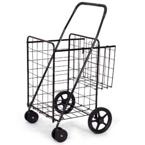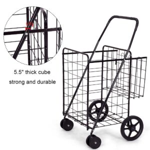 -Ergonomic handle universal front wheels and large rubber rear wheels