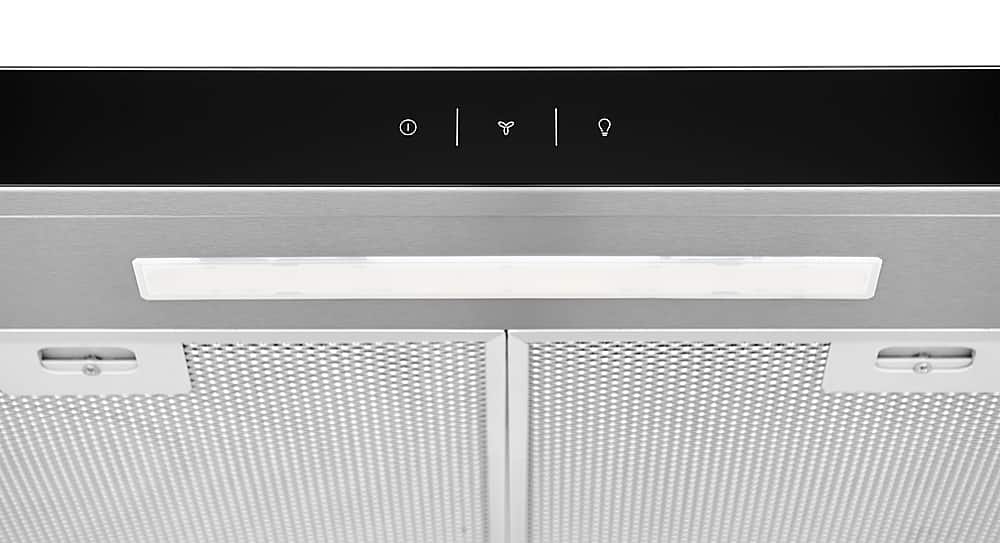 Frigidaire 30″ Convertible Range Hood features a filter indicator light that reminds you when it’s time to replace your carbon charcoal filter to continue capturing odors and circulating fresher air. Also offers LED lighting that illuminates the cooktop, capacitive touch controls that make selecting fan and lighting options easier, and a three speed fan that recirculates air at 330 CFM.