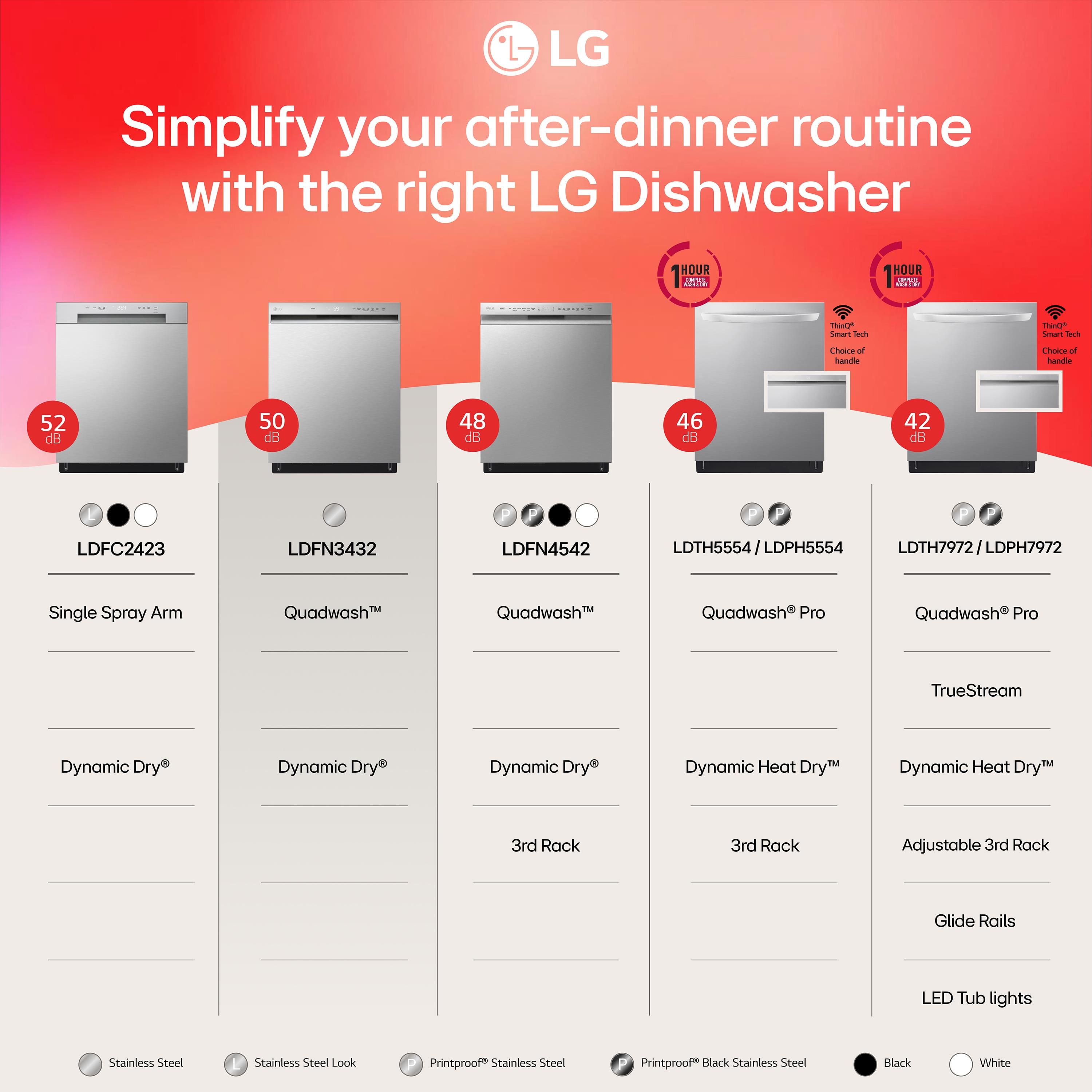 LG – 24″ Front Control Built-In Tub Dishwasher with QuadWash and 50 dba – Stainless Steel
