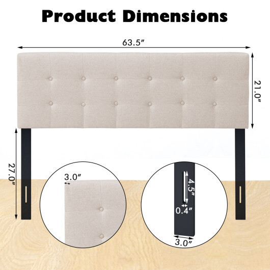 Linen Upholstered Headboard with Solid Rubber Wood Legs-Beige – Color: Beige