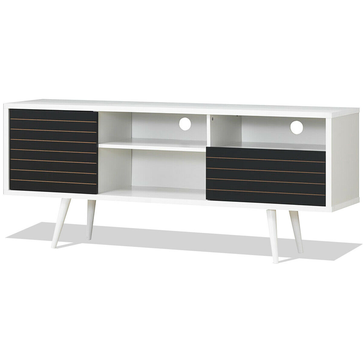Specifications: Color: Black white Material: Chipboard MDF Overall dimension: 63″ x 15.5″ x 27″ (L x W x H) Net weight: 76 lbs Package includes: 1 x TV stand 1 x Instruction