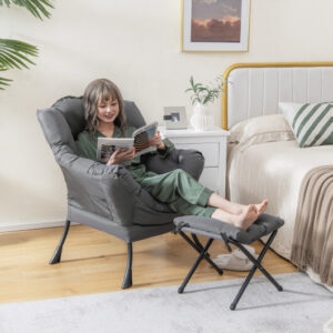 Specifications: Color: Beige/Brown/Gray/Navy Materials: Polyester Metal Doll Cotton Dimension of Sofa Chair: 31.5″ x 29″ x 38″ (W x D x H) Dimension of Ottoman: 16.5″ x 16.5″ x 19″ (L x W x H) Seat Height: 18.5″ Total Net Weight: 23 lbs Weight Capacity of Sofa Chair: 330 lbs Weight Capacity of Footrest: 110 lbs Package Includes: 1 x Sofa Chair 1 x Ottoman 1 x Cushion 1 x Instruction