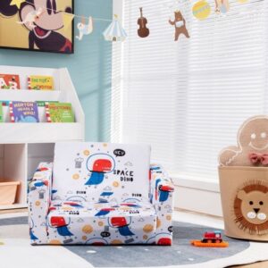 It can be folded as a couch and separated into two chairs and a table for kids. It has a strong wood frame for stability and high-density sponge on the seat and arms for extra comfort. Durable and lightweight construction make this sofa the perfect fit for your little one. Your kids can sit on to watch TV or read books in complete comfort.