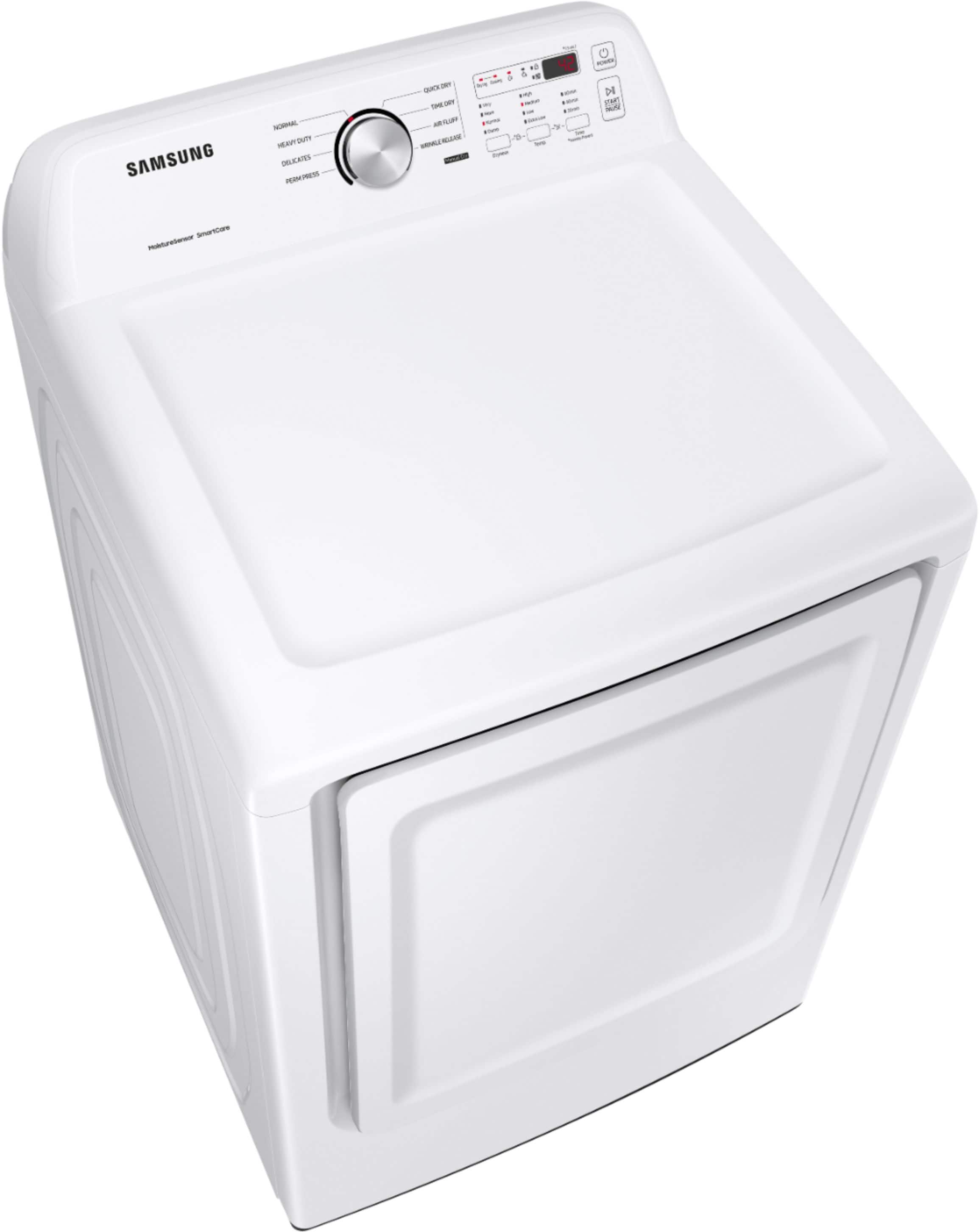 Samsung’s dryers have advanced features like Sensor Dry, which optimizes cycle time and temperature to thoroughly dry without damaging your clothes. Also, with 7.2 cu. ft. capacity and 8 Preset Drying Cycles, you can do fewer loads in less time and fulfill almost every drying need.