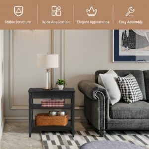 Specifications: Color: Black/Brown Material: LVL MDF Overall dimension: 23.5″ x 11.5″ x 24.5″(L x W x H) Net weight: 22.5 lbs Weight capacity of tabletop: 165 lbs Weight capacity of each shelf: 40 lbs Weight capacity of drawer: 15 lbs Package includes: 1 x End table 1 xUser guide