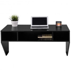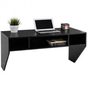 -Three compartments below desktop offer space for books boxes and accessories