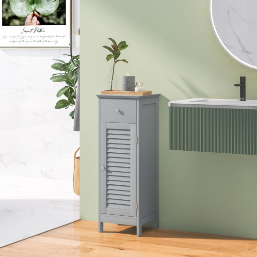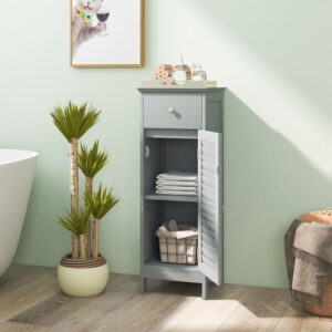 Specifications: Color: White/Gray Material: MDF Overall dimension:13″ x 12″ x 34.5″ (L x W x H) Drawer dimension: 10″ x 6″ (L x H) Door dimension: 10″ x 22.5″ (L x H) Net weight: 20 lbs Top board maximum weight: 20 lbs Shelf maximum weight: 7 lbs Drawer maximum Weight: 5 lbs Package includes: 1 x Bathroom floor cabinet 1 x Instruction