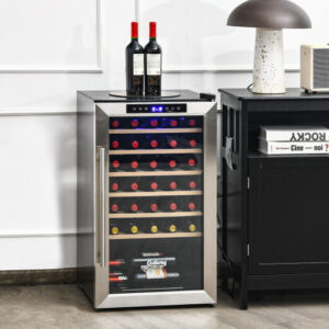 20 Inch Wine Refrigerator for 33 Bottles and Tempered Glass Door-Silver – Color: Silver